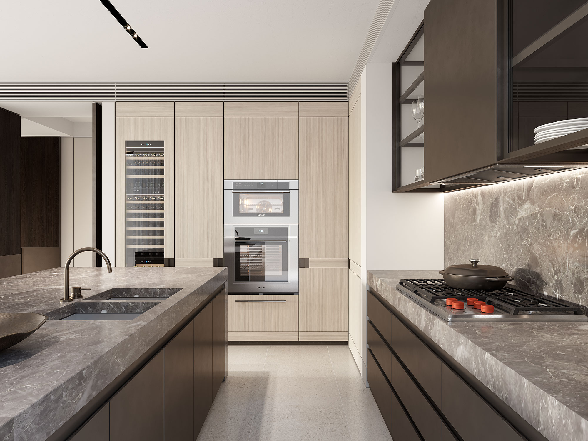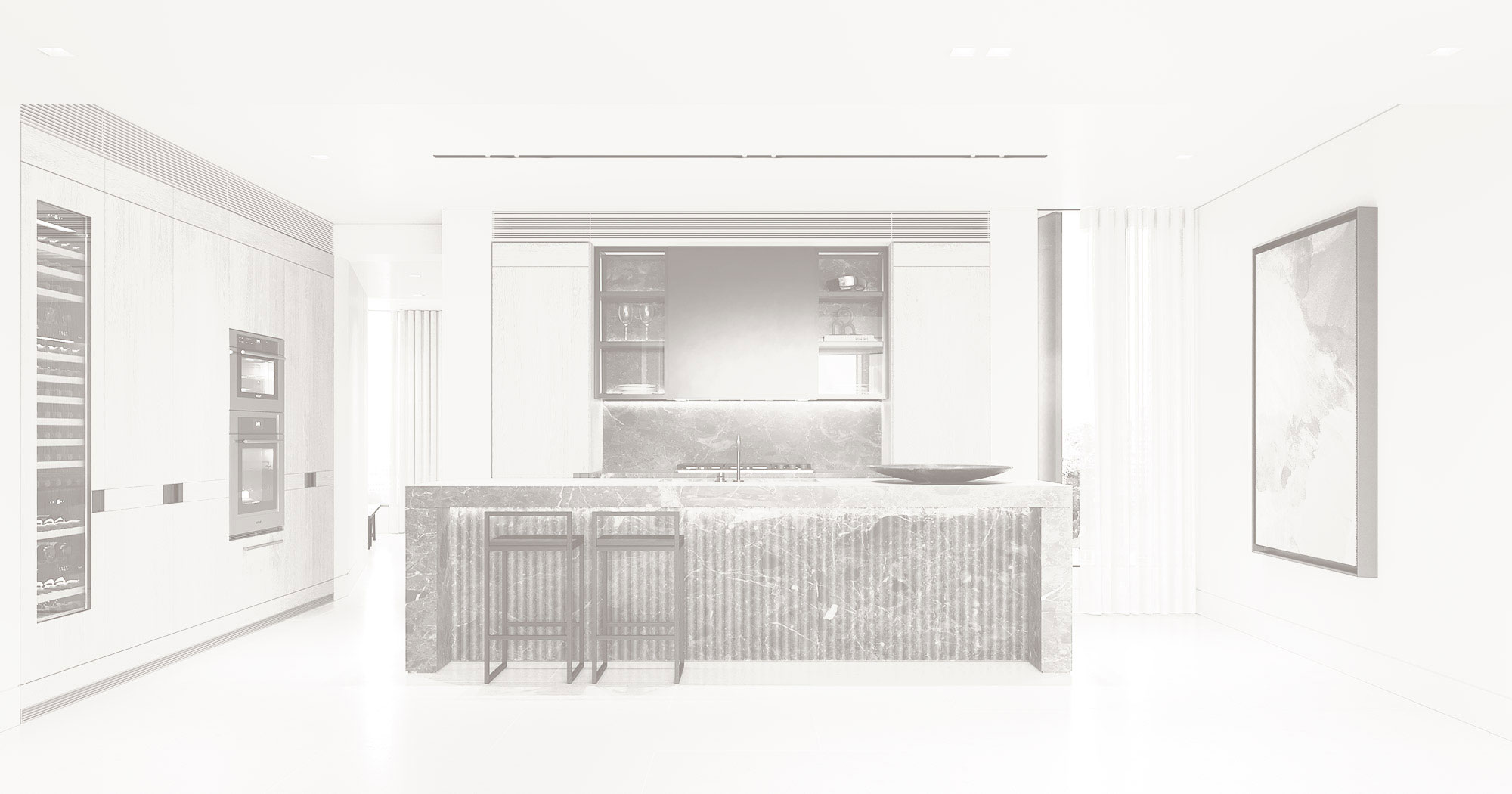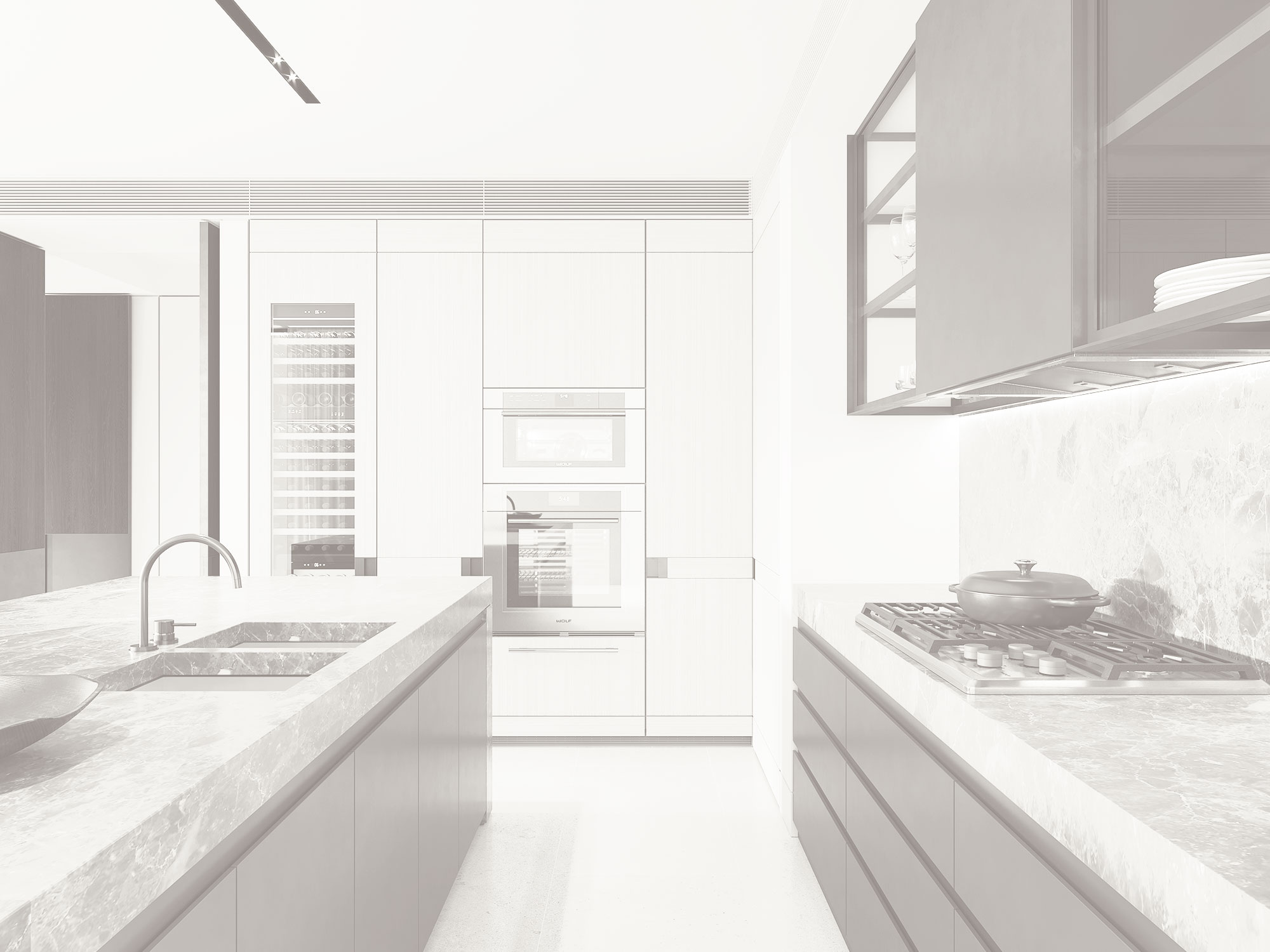 Find beauty embedded into the practicalities of daily life. A remarkable suite of state-of-the-art Wolf and Sub-Zero appliances paired with luxurious expanses of solid marble bring functional glamour into the everyday.